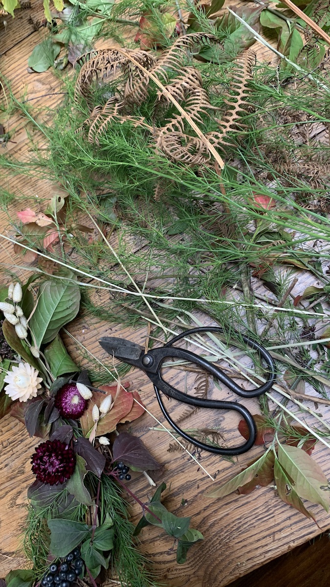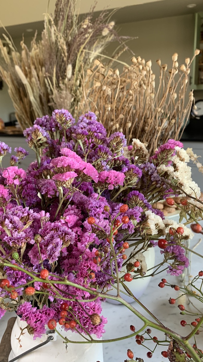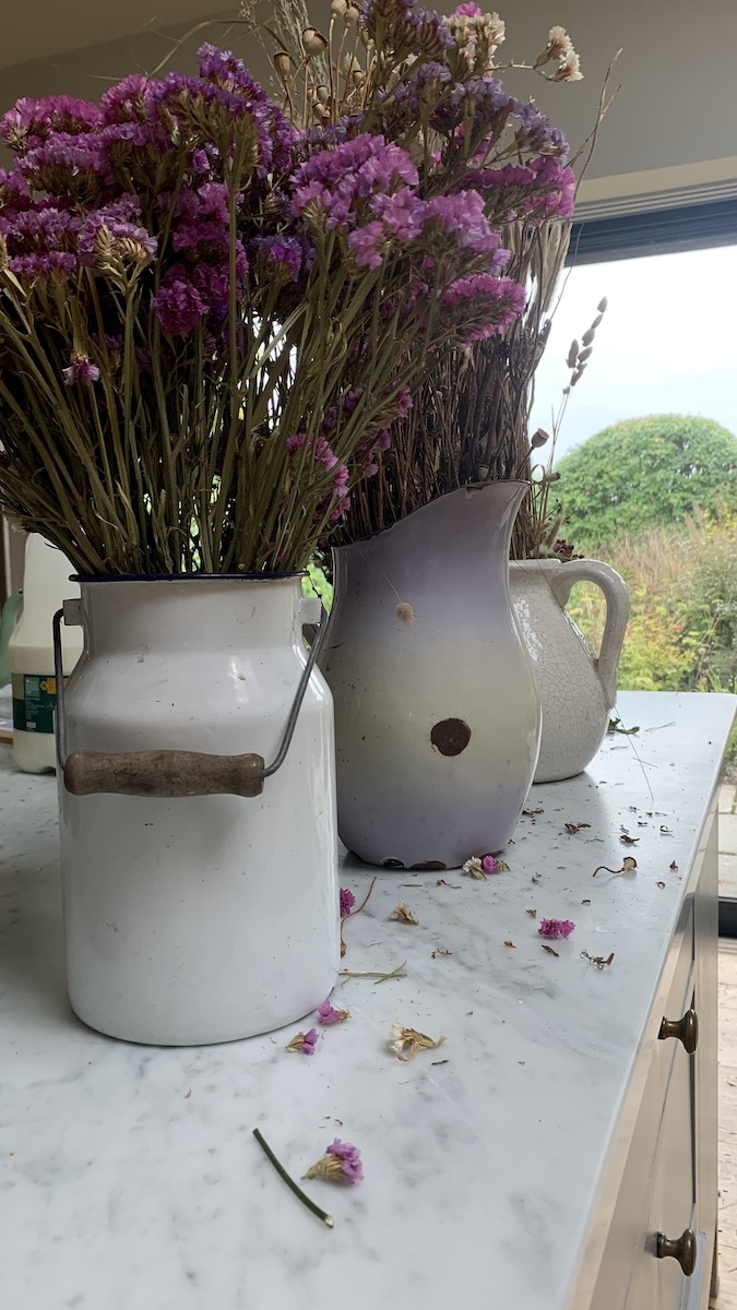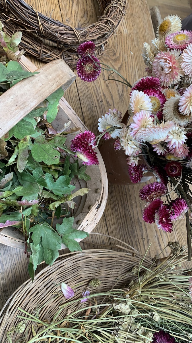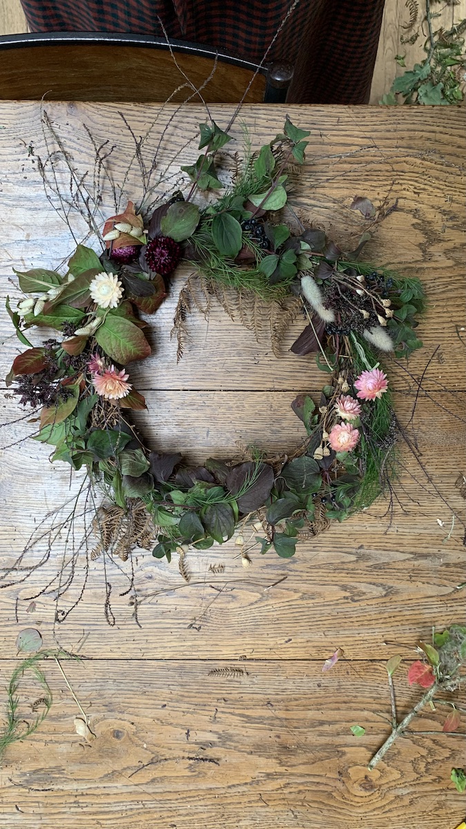 Last Friday I had a lovely day at Damson Farm doing a drying flowers and autumn wreath making workshop with Bex Partridge of Botanical Tales. Bex runs a business growing and creating with beautiful dried flowers and it was a delight to use some of them to create a lovely moody autumn wreath. I came home with lots of ideas and inspiration for using dried flowers myself in my own creations. Bex has a new book out now with loads of beautiful creations in it!